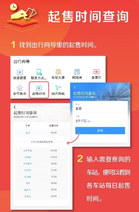 起售时间:不同火车站的车票起售时间可能不同,可以通过铁路12306APP或官网查询具体车站的起售时间,以便在第一时间开始抢票。