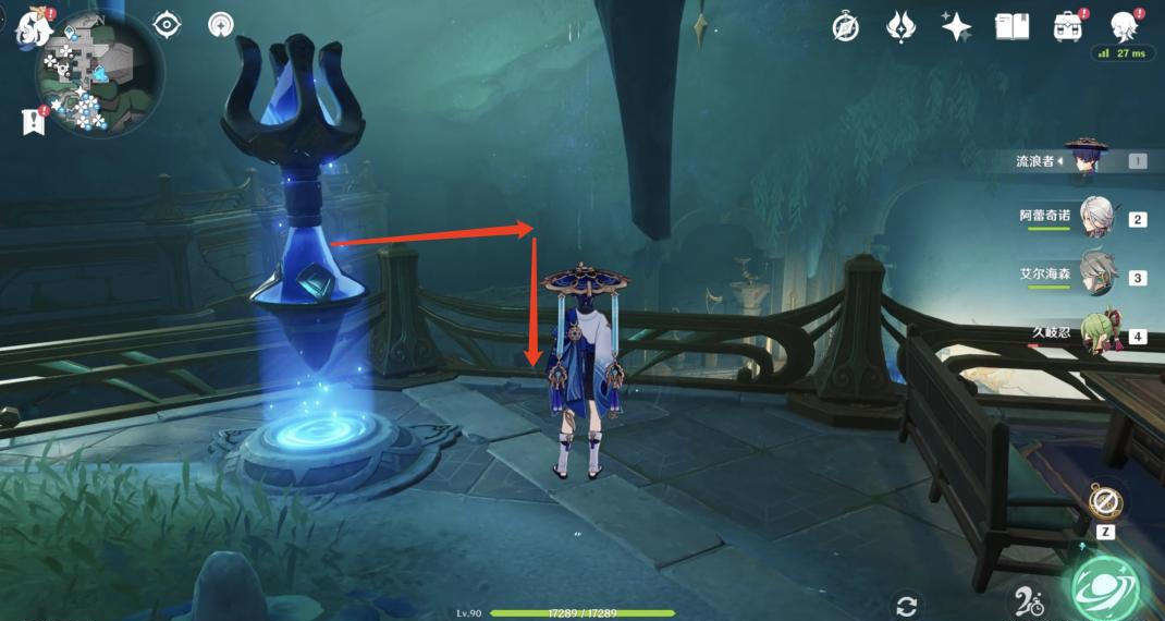 (2)到达机关位置,即可看到魔法书,绕过去即可。