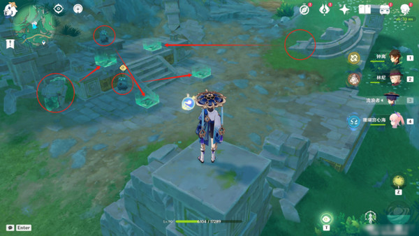 (2)然后,击败下方的魔物,解锁仙像,放在碎石旁的的底座上