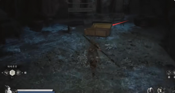 2、等下坡后往左边走,在路的尽头可以看到有一个宝箱,如下图: