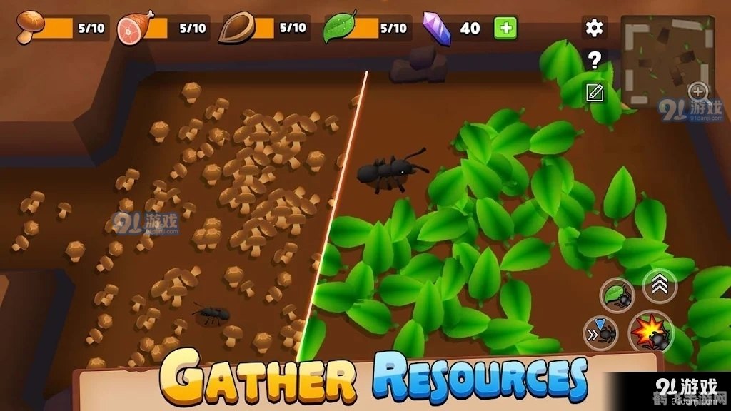 在游戏中,还要注意防御敌人的进攻,建造防御工事,训练强大的蚂蚁军队,保卫你的庄园免受侵犯。