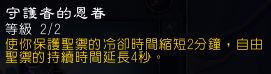 惩戒第一层:祈福 5/5 降低瞬发法术消耗10%,提高续航(主要是同层的5招架没用)