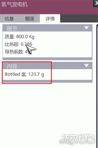 有人不知道怎么看发电机存储的氢气(容差用的,不是其他设施的存储的原料),我重新编辑了帖子,贴一张存储示意图片。点选氢气发电机,打开详情页面。