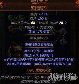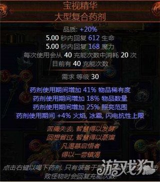 流放之路初入新坑,玩过判官冰刺、贵族正火两个BD,在玩正火时发现打宝药配合心灵升华可以让这个药剂不再鸡肋,于是便摸索出这个以药剂为核心的药侠正火BD,如有补充请留言相互交流。