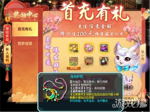 2、除了首充所送的现金之外,首充所送的狐小萌也是新手在新服时上手即可用的宝宝。