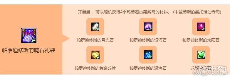 在卡兰蒂斯的委托活动期间,勇士们通关推荐地下城可获得1个活动材料【帕罗迪修斯的魔石礼袋】,若是通过【玛蒂娅的要塞】和【卡修斯的封印】两个关卡的话,我们可以获取2个活动材料【帕罗迪修斯的魔石礼袋】。