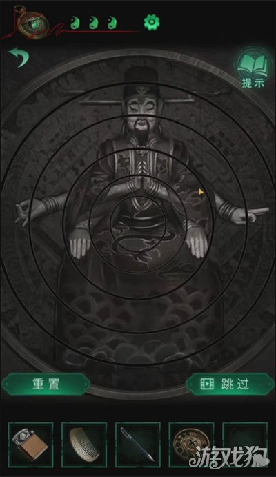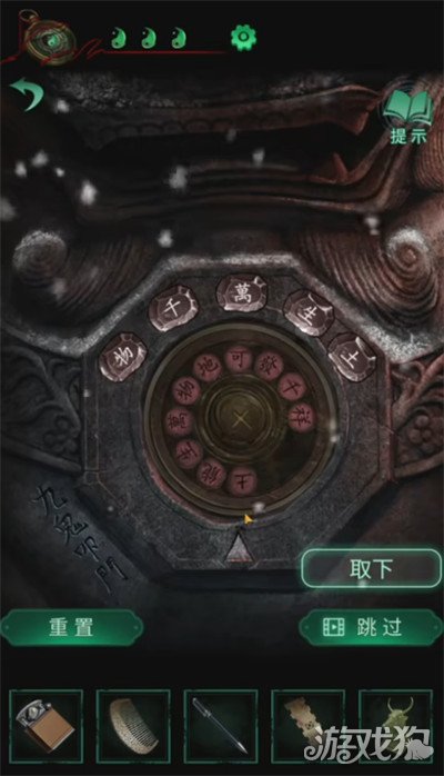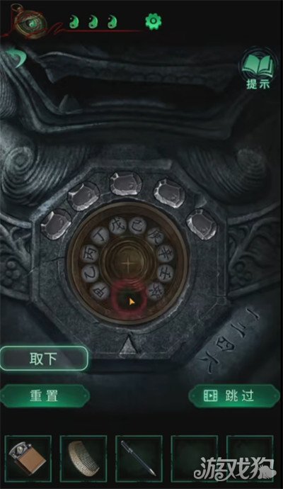 33、点击右侧狮子,将拨号盘放上去,按照的顺序拨号。