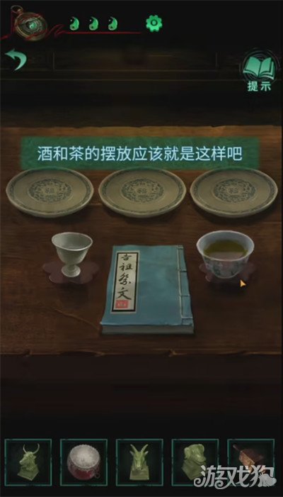 55、点击桌子中间,会出现一个空洞。获得桃木剑。