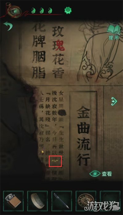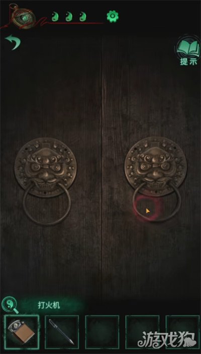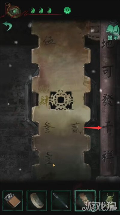 32、来到大门,使用序号29获得到的物品,在门口对联两处进行对照。发现线索。