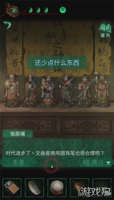 52、点击上面的桌面,可以看到几个神仙雕像,将圆珠笔放在文曲星上。