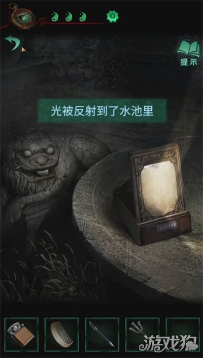 20、返回大门,点击左侧狮子,将拨号盘外壳放在上面。