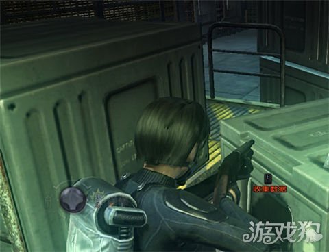 再次遇到无AI杂兵,提示按G用手雷群歼.附近有一台可以搜集情报的电脑,和两颗绿草药,身旁有个弹药补给箱,消灭下方和天桥上的敌人后下阶梯,