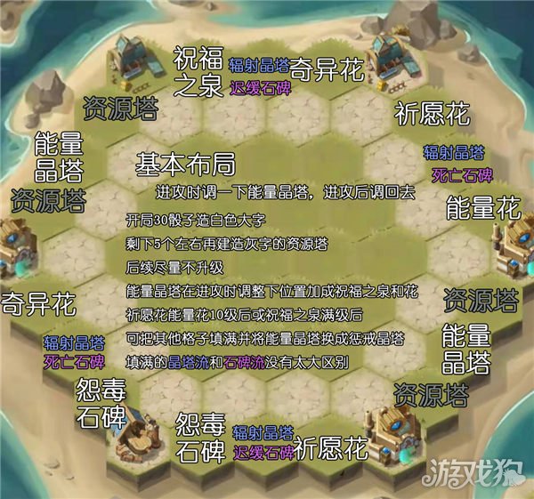 中后期由于能量晶塔的削弱和建筑的等级限制,建议在关键建筑一定等级后(例如关键的花10级,祝福之泉满级之类的)将能量晶塔改建成其他防御建筑。