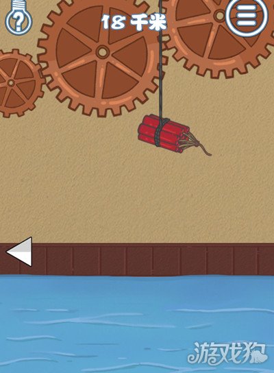 这一关还是比较复杂的,进入游戏页面的时候先点击墙面上的按钮,将轮船放下来,先不要着急上船,将游戏画面切换到另一边会发现有炸弹,这个时候回来再点击一次红色按钮,之后会发现红色炸弹会掉落到湖里,我们再点击一次按钮之后到另一边点击最小的齿轮获得道具,然后将齿轮放在轮船上,小木乃伊乘坐轮船离开就可以通关了。