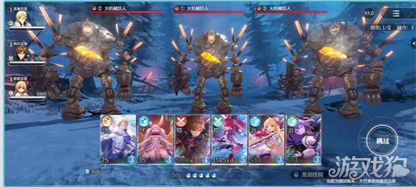 需要在尽早回合压低3只巨人血线至80%以下,多余COST使用提升防御、嘲讽及恢复卡牌以稳固血线;在加持护盾后,使用单体伤害卡牌对敌人逐个击破。
