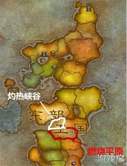 图中白色位置为灼热峡谷,红色位置为燃烧平原。