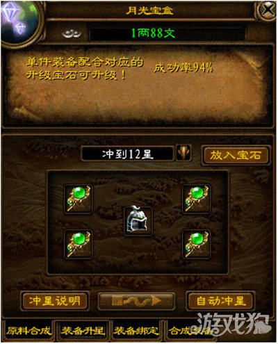 绿色征途升星技巧解析 装备升级攻略。随着人物等级的提升,之前打造出的装备开始渐渐无法适应练级的需求。这时,提高装备威力就成了头等大事了。不少玩家也许会想到花大力气大价钱重新购买或打造一件装备,其实那大可不必,可以将装备通过相应的各类升级宝石升星,从而升为更高级的装备。