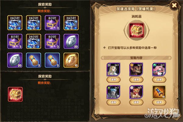 除了路线图之外,还有本次新奇境的奖励,奖励这次是有个英雄自选箱,可以换一些英雄还有猴子。