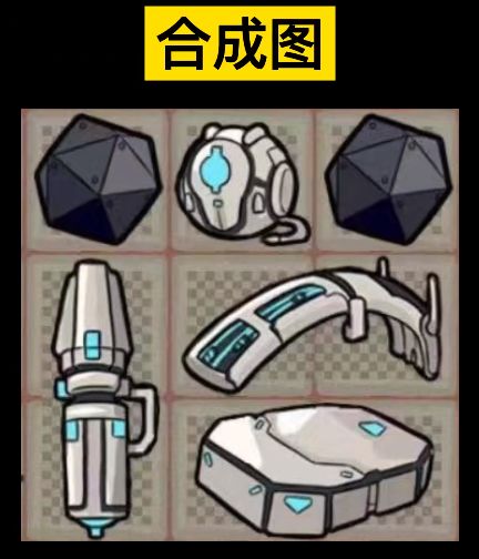 2、凑齐之后我们需要将四个模块按照下图的方式摆放好。(注意左下角的枪的方向,摆错的话无法合成)