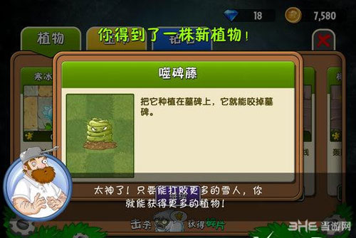 5)雪人僵尸死后除了金币钻石之外,还能得到一个宝箱(餐盒),里面有植物的拼图,凑齐一套植物拼图就可以兑换相应的植物了。