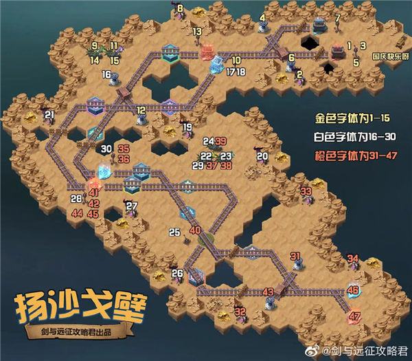 扬沙戈壁一带矿藏资源丰富。这里出产的矿石是矮人用于炮制弹药, 升级火器等的重要原料。为了运输矿石,矮人们还特意在扬沙戈壁之上建造了数条轨道。来看看剑与远征扬沙戈壁攻略路线图,扬沙戈壁怎么打。