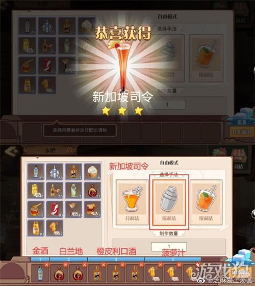 ☆P5=隐藏饮品:新加坡司令(首次需自由调制)