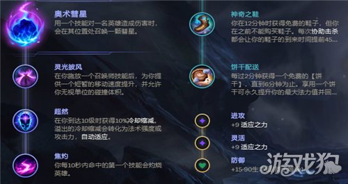 维克托这个英雄属于一个比较吃发育的角色,因此在天赋上选择奥术彗星增强打线能力,主系再选择灵光披风、超然以及焦灼,副系选择启迪中的神奇之鞋和饼干天赋。这套天赋给维克托提供了很强的赖线能力,加速维克托前期在线上的发育速度,灵光披风也能提供一些机动性配合Q技能的加速可以更好的风筝敌人。