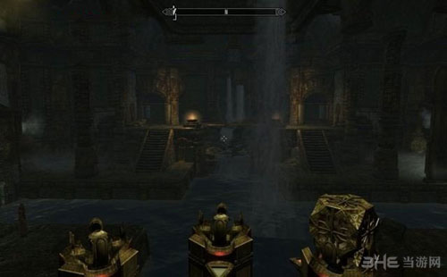 进到水道大厅,跑到上层平台,这里有三个控制台座,用它们可以控制大厅里的3道吊桥,得让它们同时落下才行。