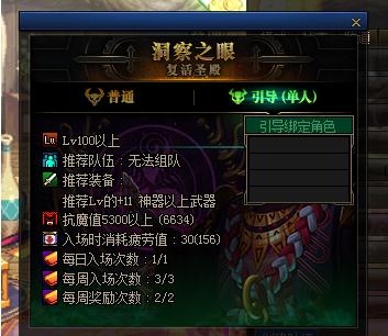 在特殊频道中选择洞察之眼频道,进入频道后组建队伍时选择引导(单人)模式即可。