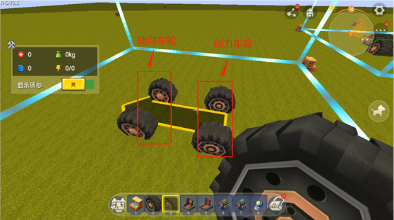 在机械车间里,大部分方块可以作为车身方块使用,不同材质的车身方块的质量、生命值都不相同,载具的总重量将会影响到行驶速度。
