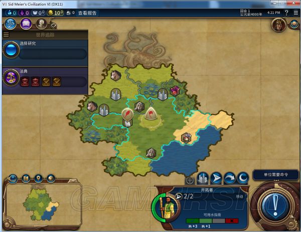 第一回,原地不坐,往上过河走两格再坐,坐下就研究采矿造工人,勇士往10点方向走去抢巴西移民