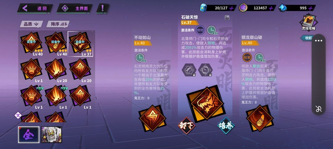 接着,从寄灵人上来说,平民前期如果不是单纯喜欢吕布或者有钱的大佬,就尽量多抽火将军的池子,因为吕布太脆又吃操作,火将军搞到2-3只都可以停手了,火将军是平民前期推图利器,火将军的技能带这三个,记得打架先开领域,然后第一个红色尽量给领域,亲测组队副本比我高1w战力的带其他技能的火将军伤害没我高。
