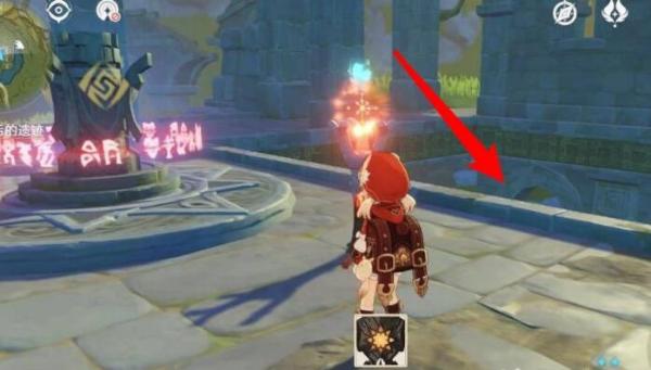 4、四格火柱子全部点亮后,岩元素方碑就能就锁了,然后我们使用岩元素角色的技能点亮方碑;