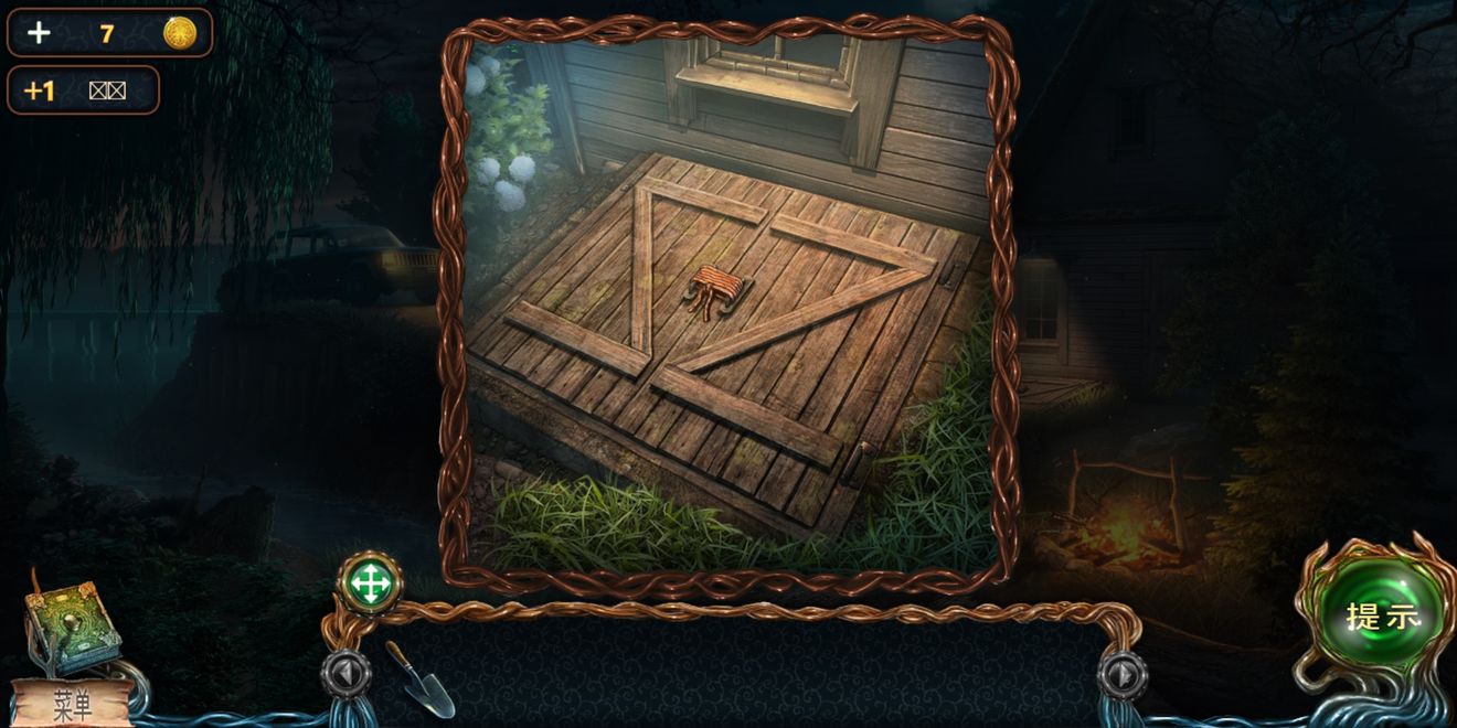 在篝火旁边找到铲子。