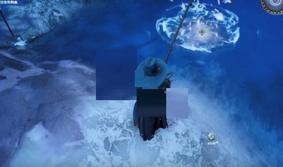 1、先需要找到可以钓鱼的位置,在水中有一块白色的区域表示这块地方可以钓鱼。