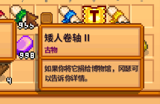 矮人卷轴共有4份,并且收集到矮人卷轴后需要捐献给博物馆馆长。