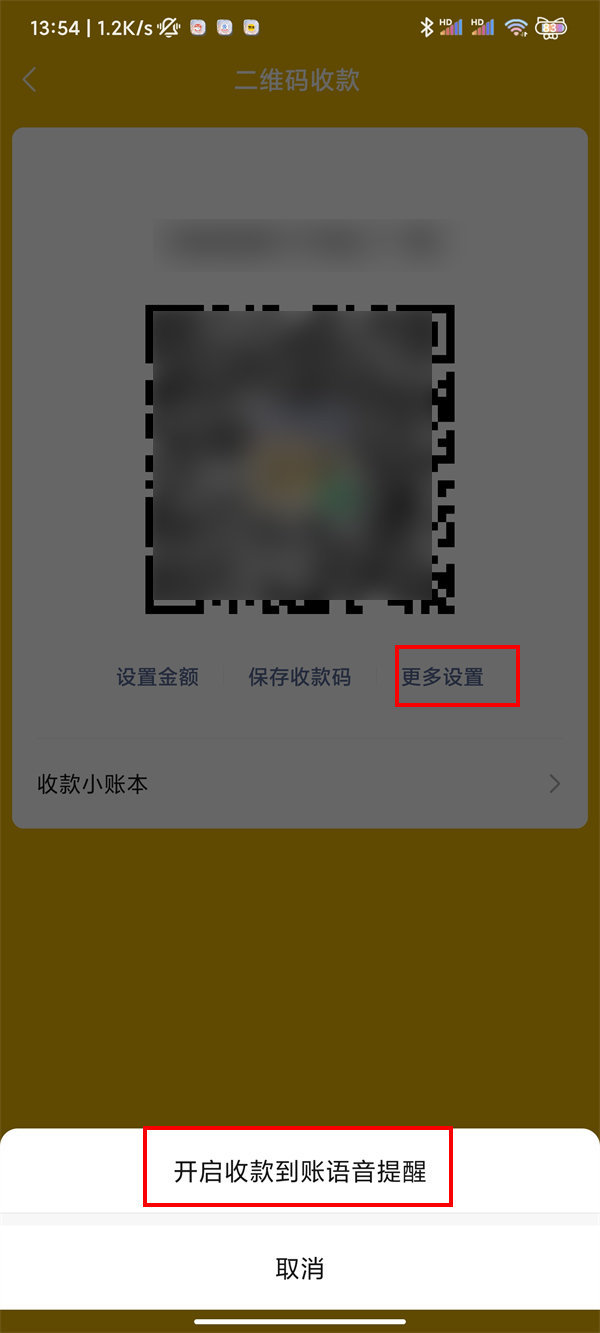 3、在弹出的页面里找到并且点击【更多设置】,最后开启收款到账语音提醒即可。