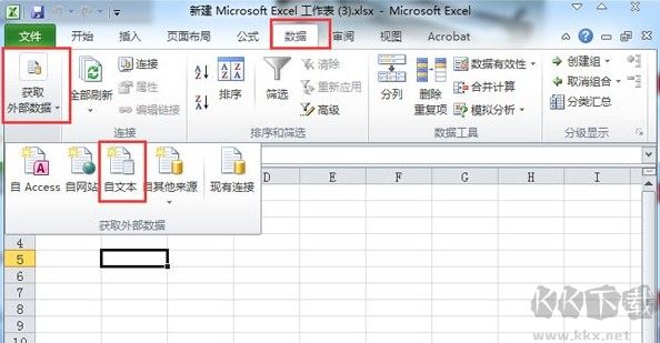 6、打开Excel,然后进入“数据”选项卡,在“获取外部数据”选项组中选择“自文本”。