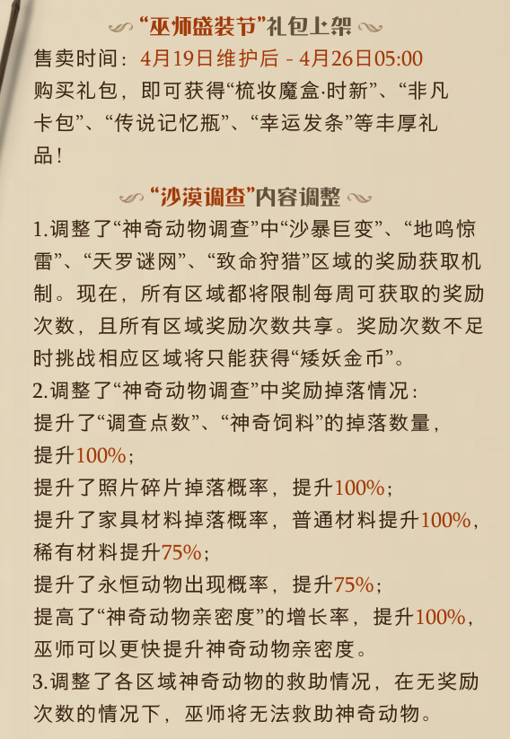 2.调整了“神奇动物调查”中奖励掉落情况: