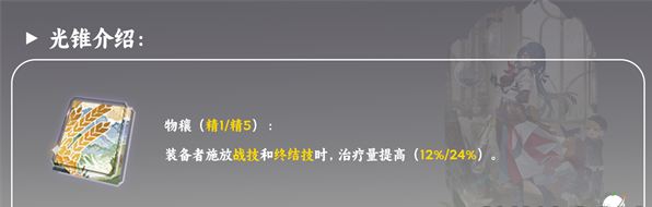 过渡光锥,不精五不使用,释放战技与终结技,治疗量提高,完美与娜塔莎契合。