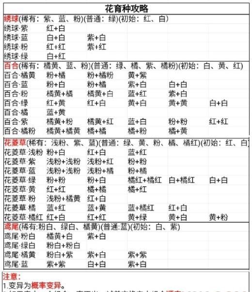1.桃源深处有人家花圃育种如下,对已收集的成花进行育种,每次消耗一根育种笔,不消耗成花。