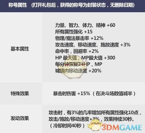 (打开礼包后,获得的称号为封装状态,无删除日期)