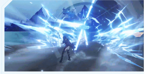 驱动拳套,打出凝聚寒霜的直拳,持续以冰锥冲击前方区域,造成多次冰元素范围伤害。冰锥冲击结束后,将在敌人的位置降下流涌之刃,造成具有荒性的冰元素伤害。