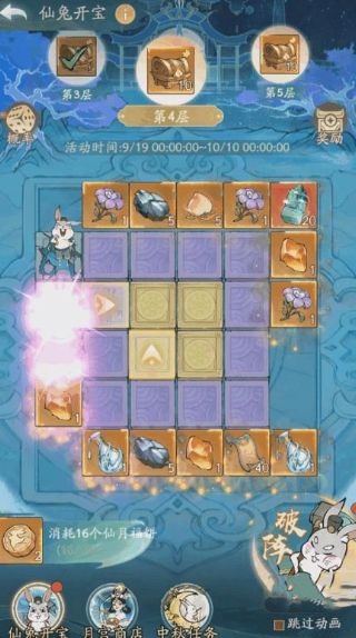 秘宝殿每层都有多格秘宝,道友需要让玉兔由外到里依次进行破阵。
