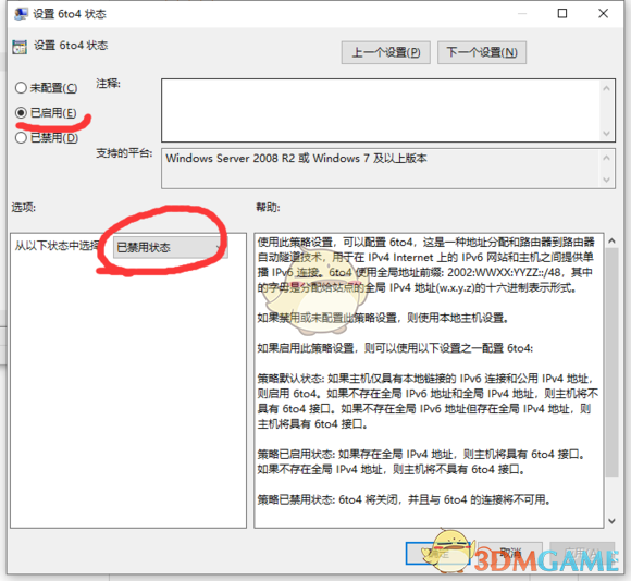 1、“6to4状态”和“ISATAP状态”都配置为“已禁用状态”,看下图