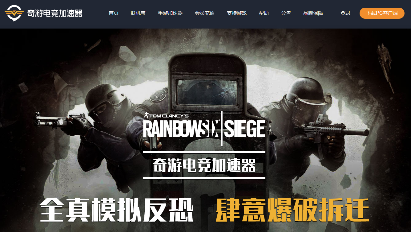 奇游加速器下载地址:https://www.qiyou.cn/specials/general?cid=720,下载后搜索“彩虹六号”,即可找到该分区进行加速: