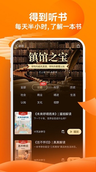 得到,专为终身学习者打造的阅读学习app,软件包含丰富的各学科知识课程,在这里无论你是想提升自我掌握职业技能,还是想单纯的增加知识面,这里你都可以找到合适的课程和优质的听书内容,有需要的用户可以下载使用!