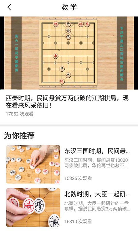 3.大师讲课:专业象棋大师为你提供优质的视频教学内容,让你观看领略不同棋路风格