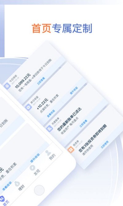 多样化的理财产品满足您全方位财富管理需求: 零钱管理, 期限理财, 网贷, 基金等。