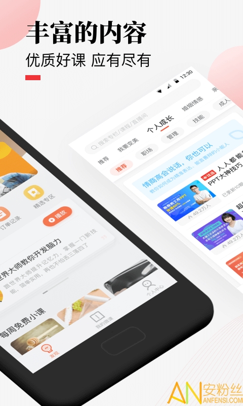 1.【丰富内容】全品类课程,各行业意见领袖、IP,总有一个受你喜欢
